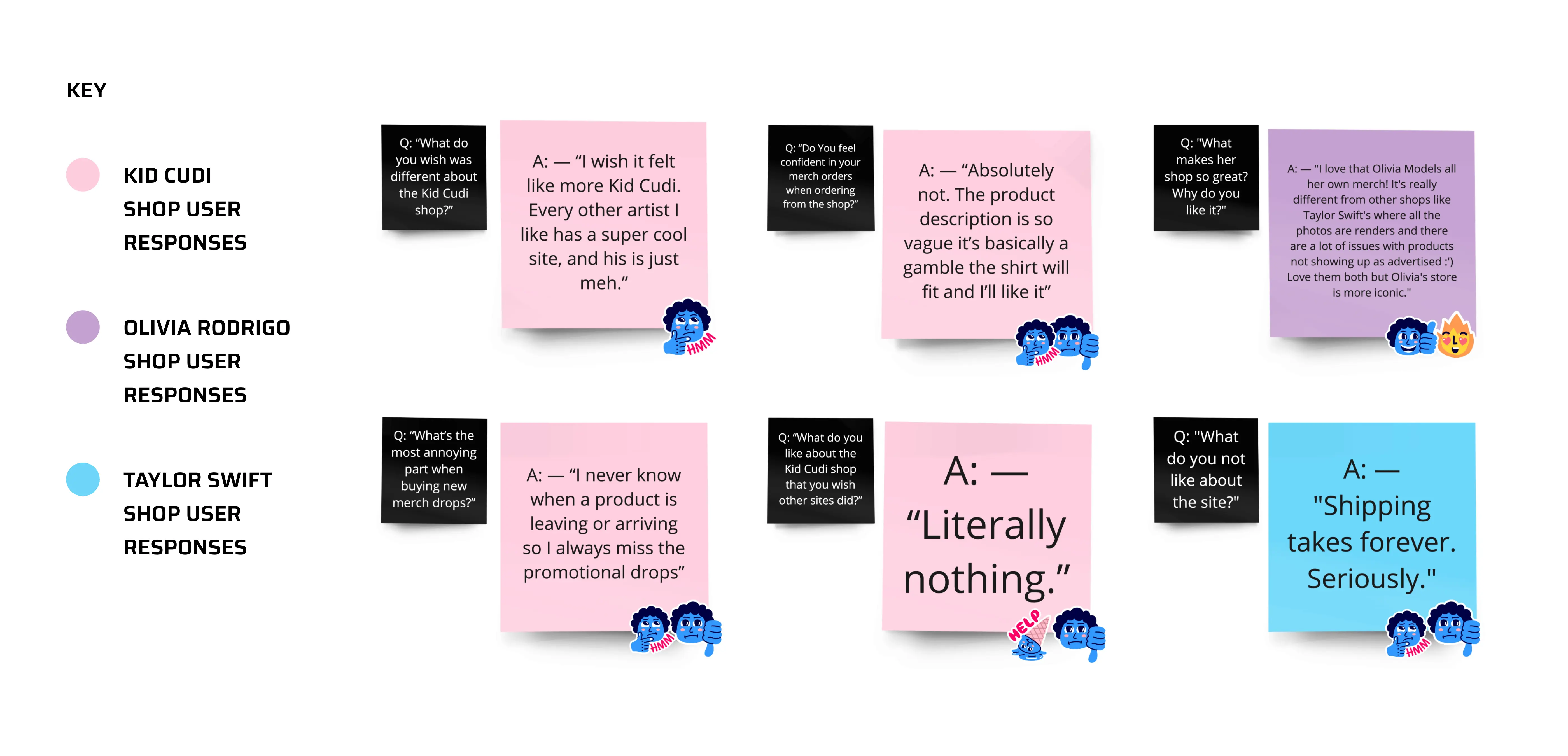 Next, I needed other opinions. Was I missing anything? Did I have false confidence in a feature? To find out, I turned to Reddit, where I could quickly reach fans and potential users. I asked casual questions and received great responses—not just from Kid Cudi Shop users, but also from shoppers of the Taylor Swift, Olivia Rodrigo, and Travis Scott stores.