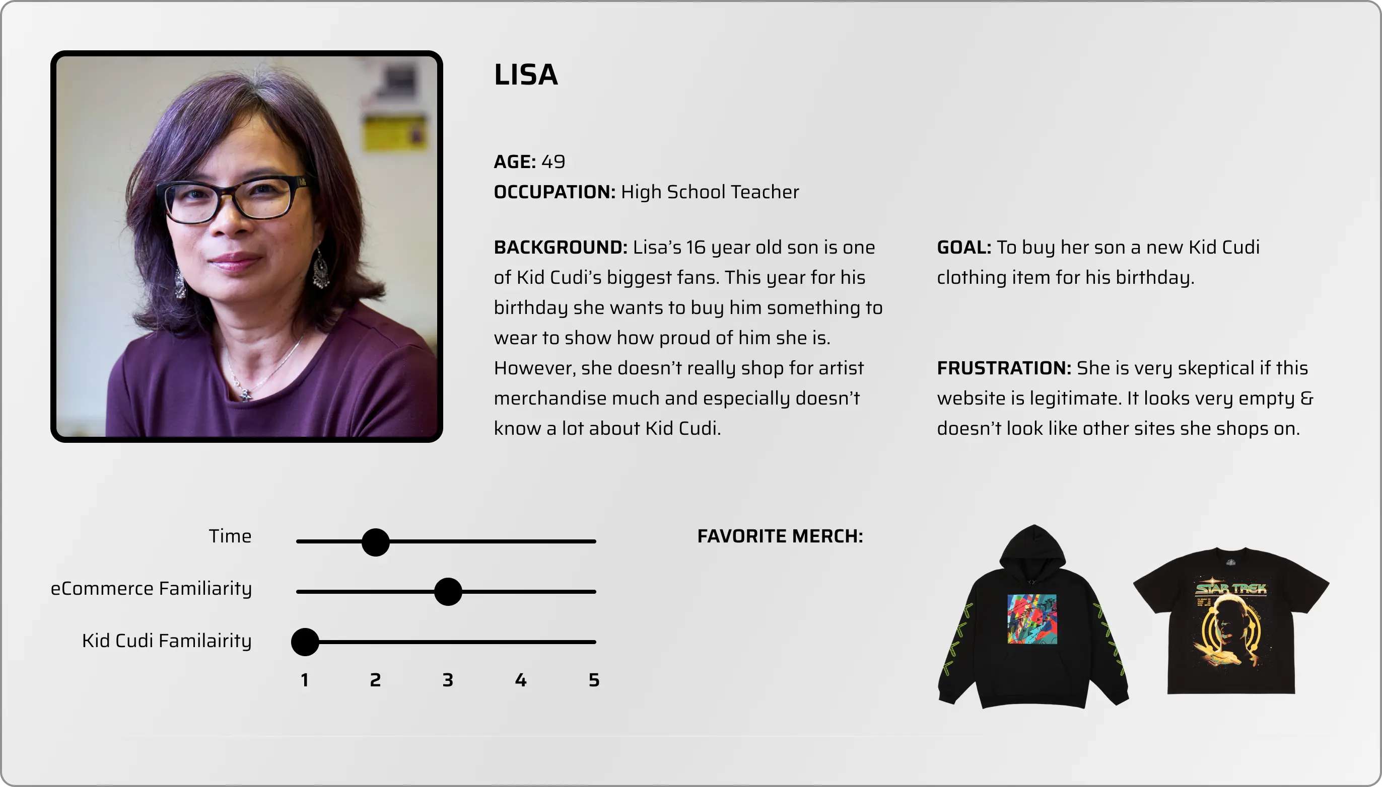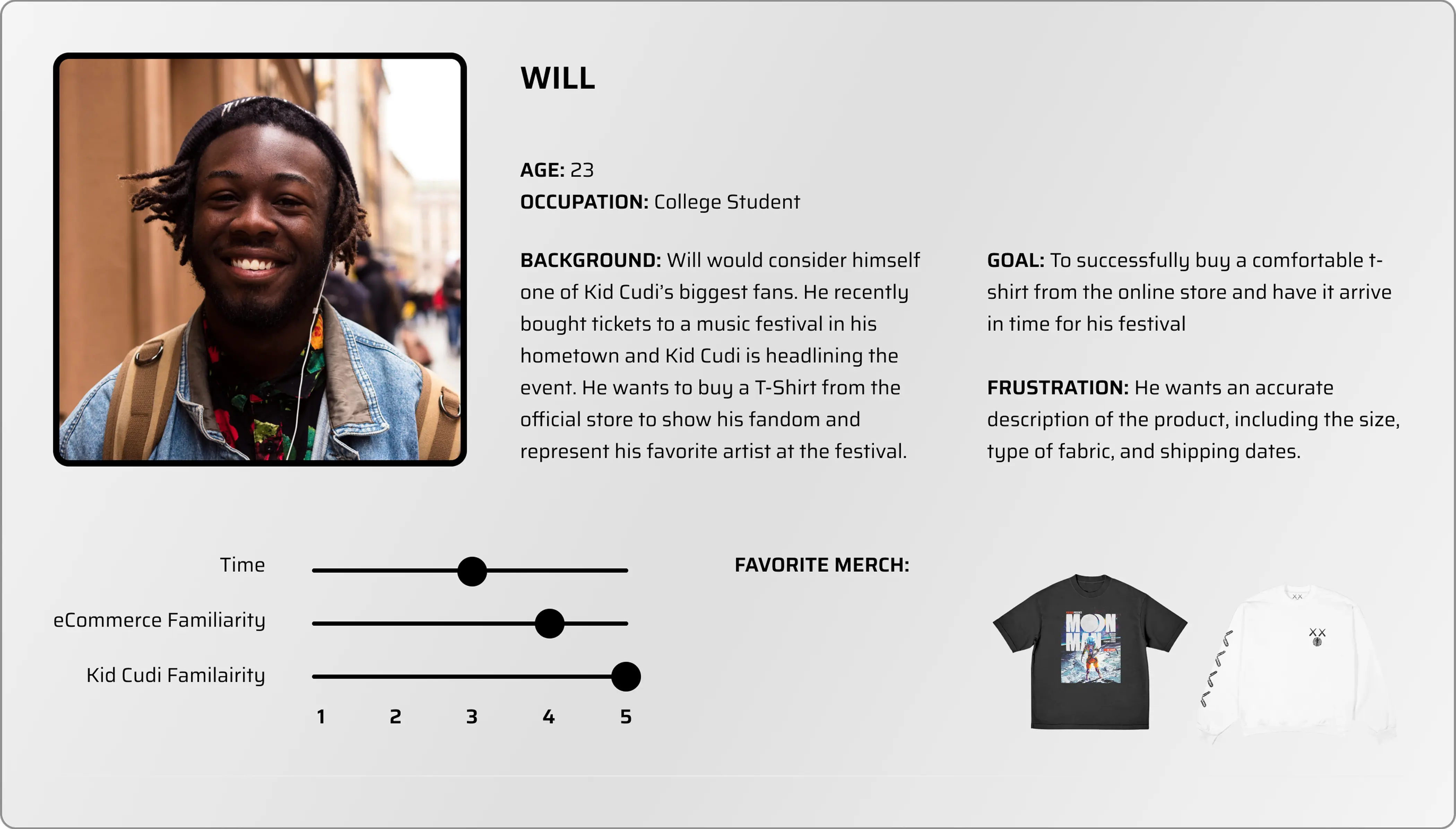 For my next step, I wanted to put myself in other shoppers shoes. I asked myself who is Kid Cudi’s demographic? Does this change for his online shop? Who would realistically be buying things off this website?