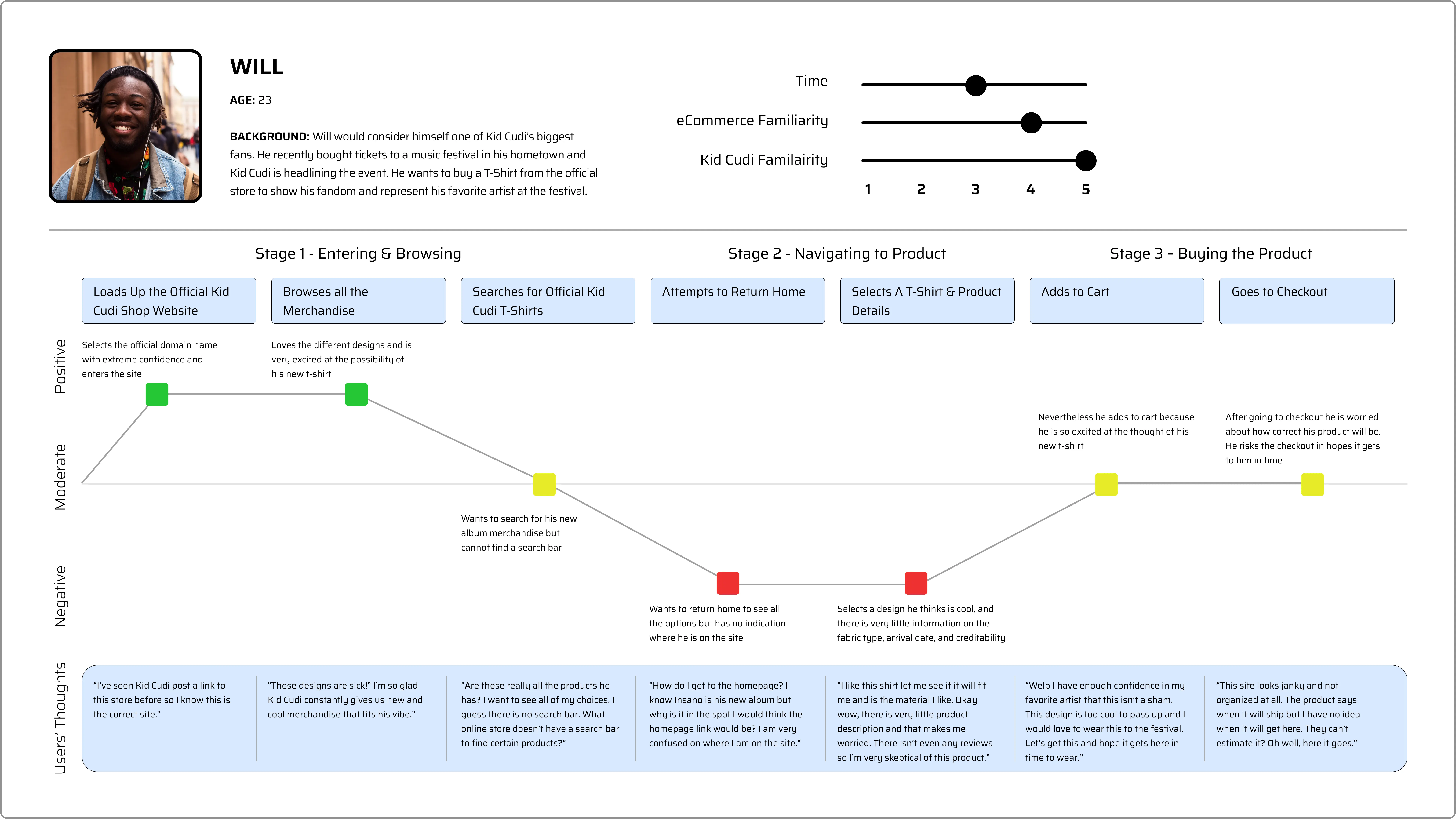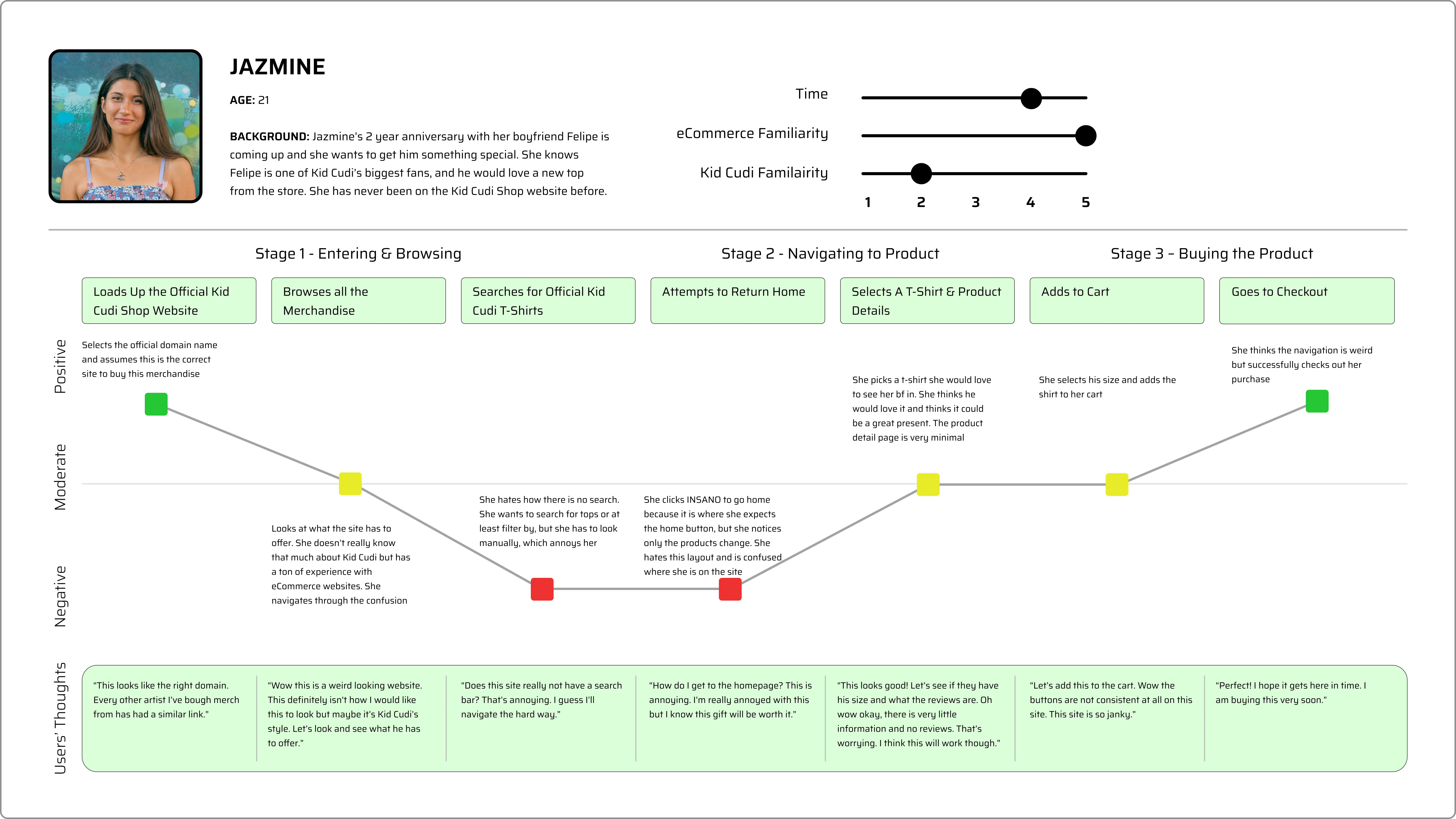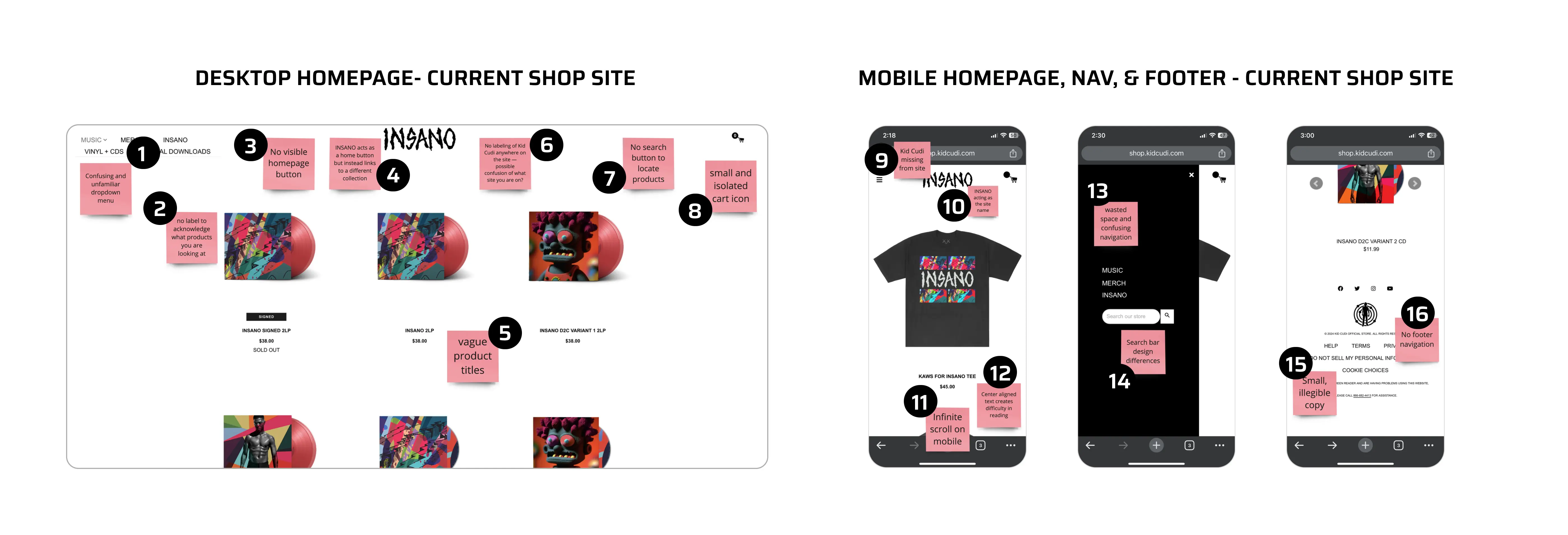 Combining my Kid Cudi fandom and my design observation skills, I took a deep dive on what this eCommerce website was missing. With my co-op experience at Snow Commerce, I was able to identify problems and use my knowledge in the online shopping experience to outline what needed to be fixed.