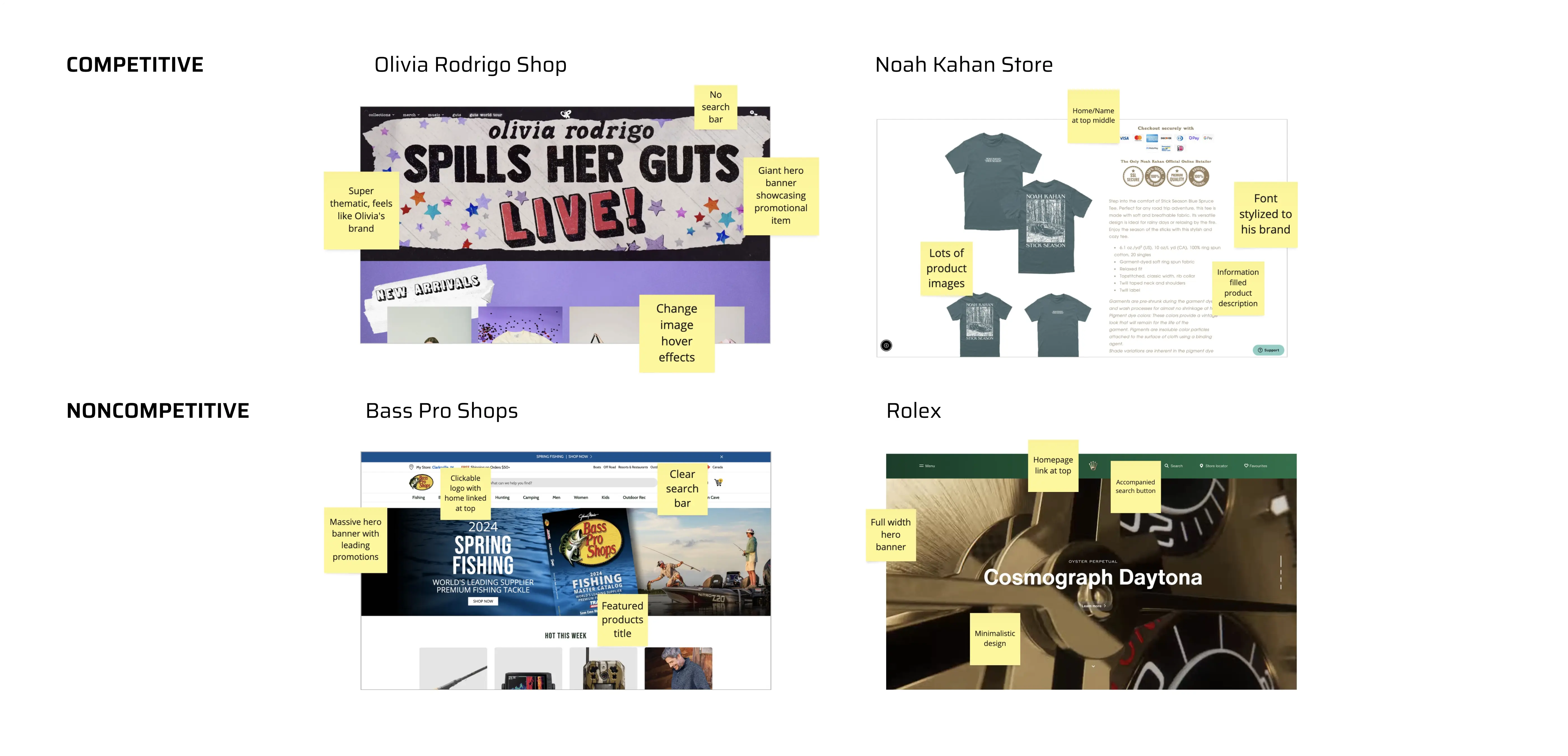 Next, I benchmarked other online eCommerce stores, both competitive like other artists stores, and noncompetitive like clothing and gear stores.