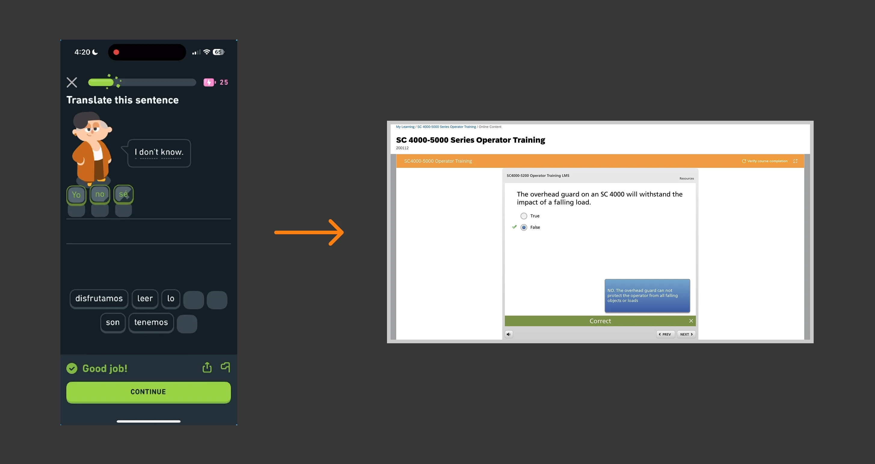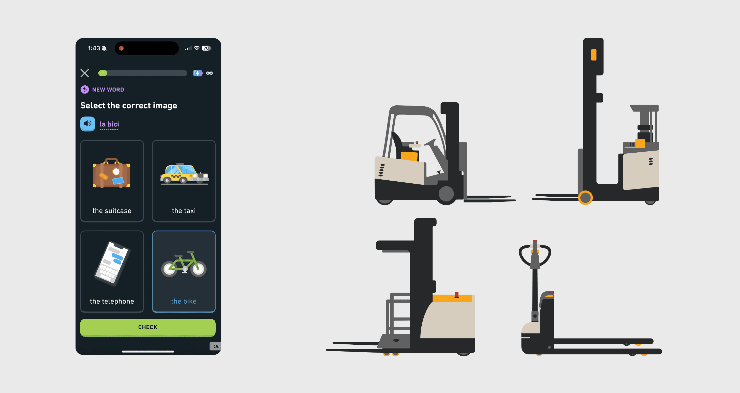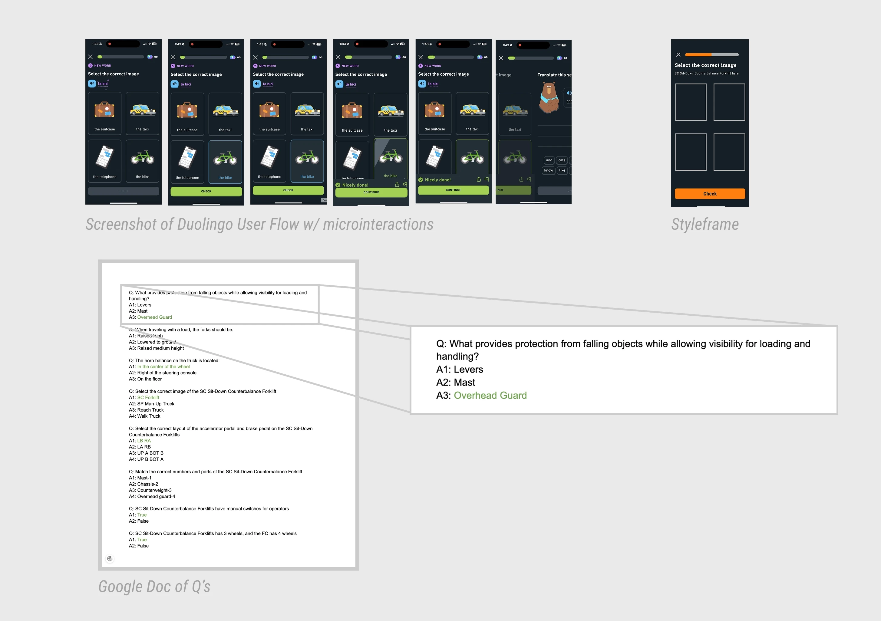 I wondered if Crown could have a similar experience to Duolingo, incorporating microinteractions for a lift truck education app.